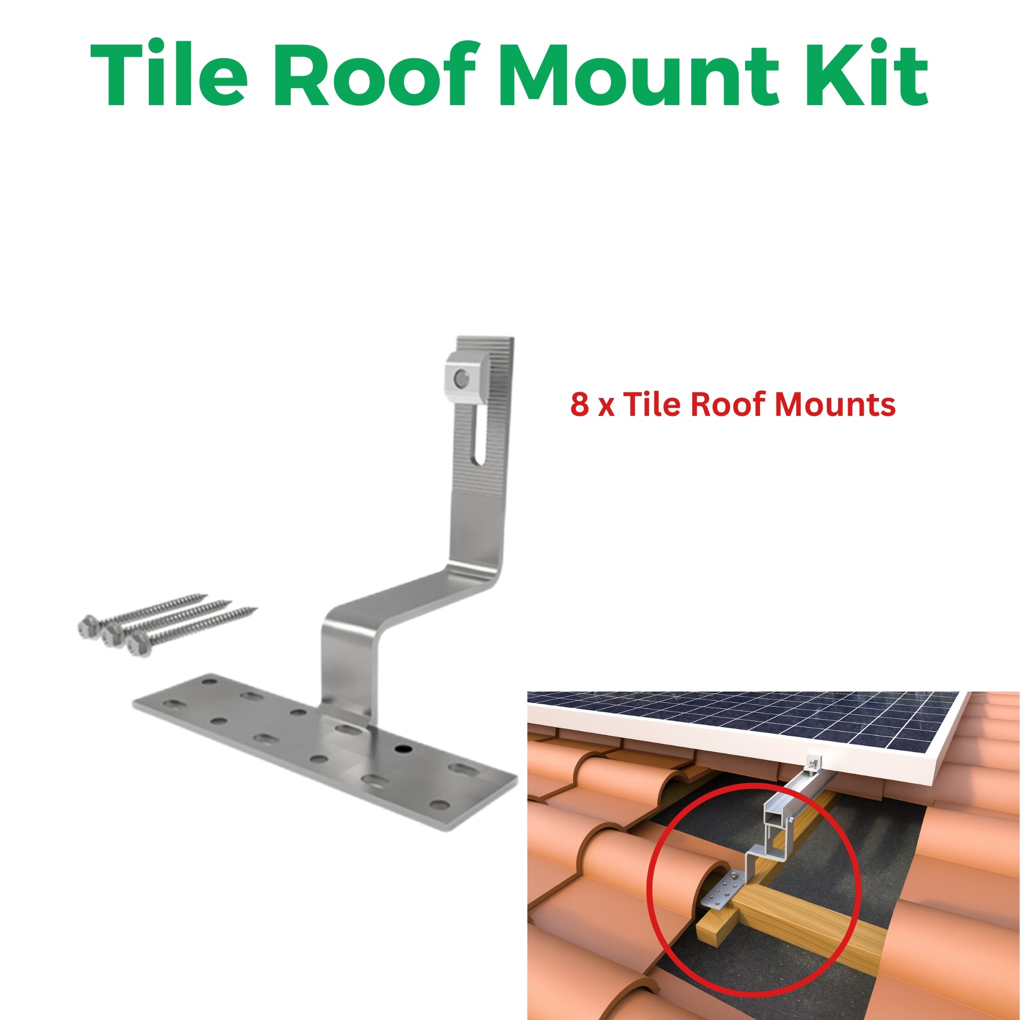 - Tile Roof Mounting Kit: Includes 8 Tile Roof Mounts